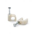 Die 6-mm-C-förmige Klammer wird zur Befestigung von Kabeln verwendet und verfügt über eine verstärkte Stelle mit einem Nagelloch, mit dem sie an Untergründen befestigt wird.