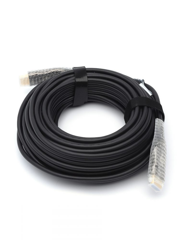 Im Inneren der Kabelsteckverbinder befindet sich ein Wandler des elektrischen Signals im Lichtstrom, der eine qualitativ hochwertige Übertragung des Signals über große Entfernungen gewährleistet, und dieses Kabel hat keine Angst vor den meisten elektromagnetischen Störungen.